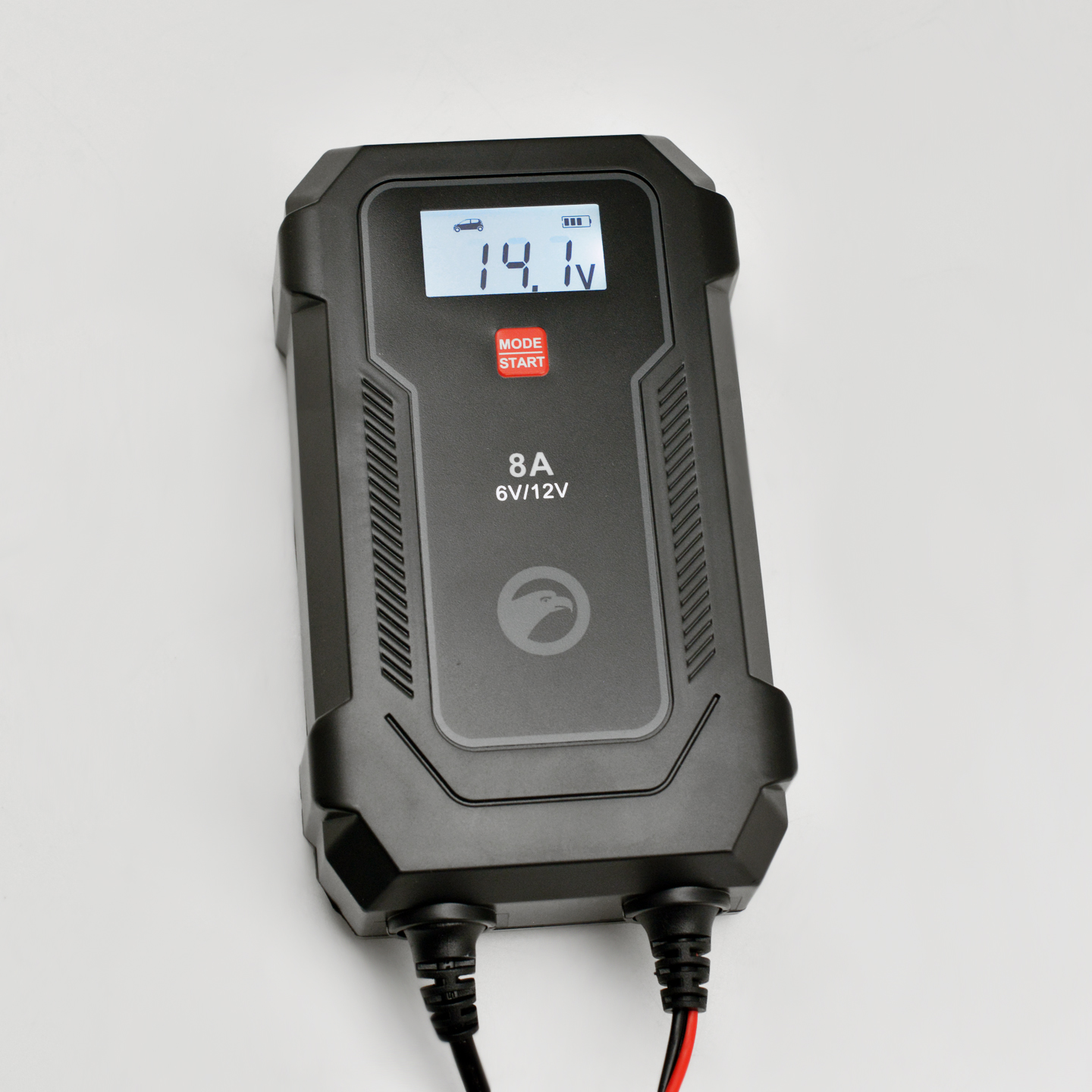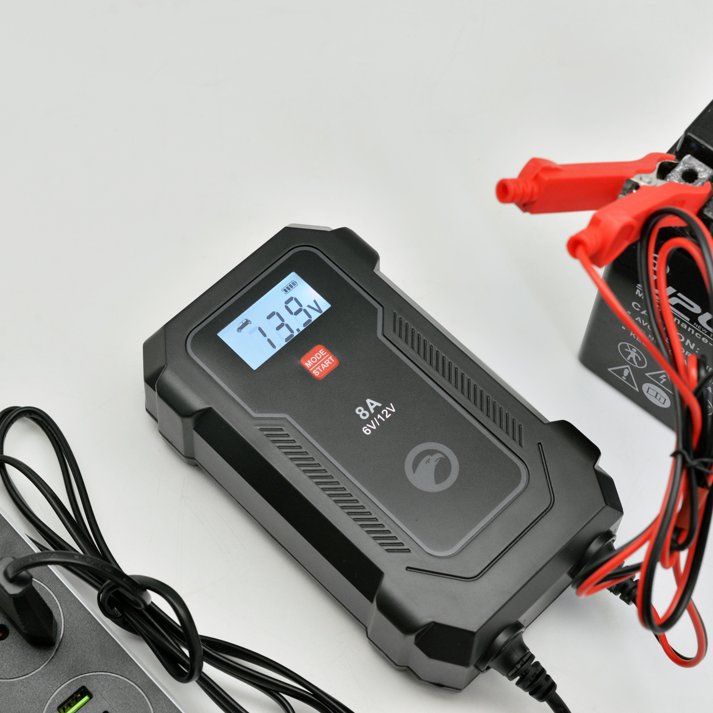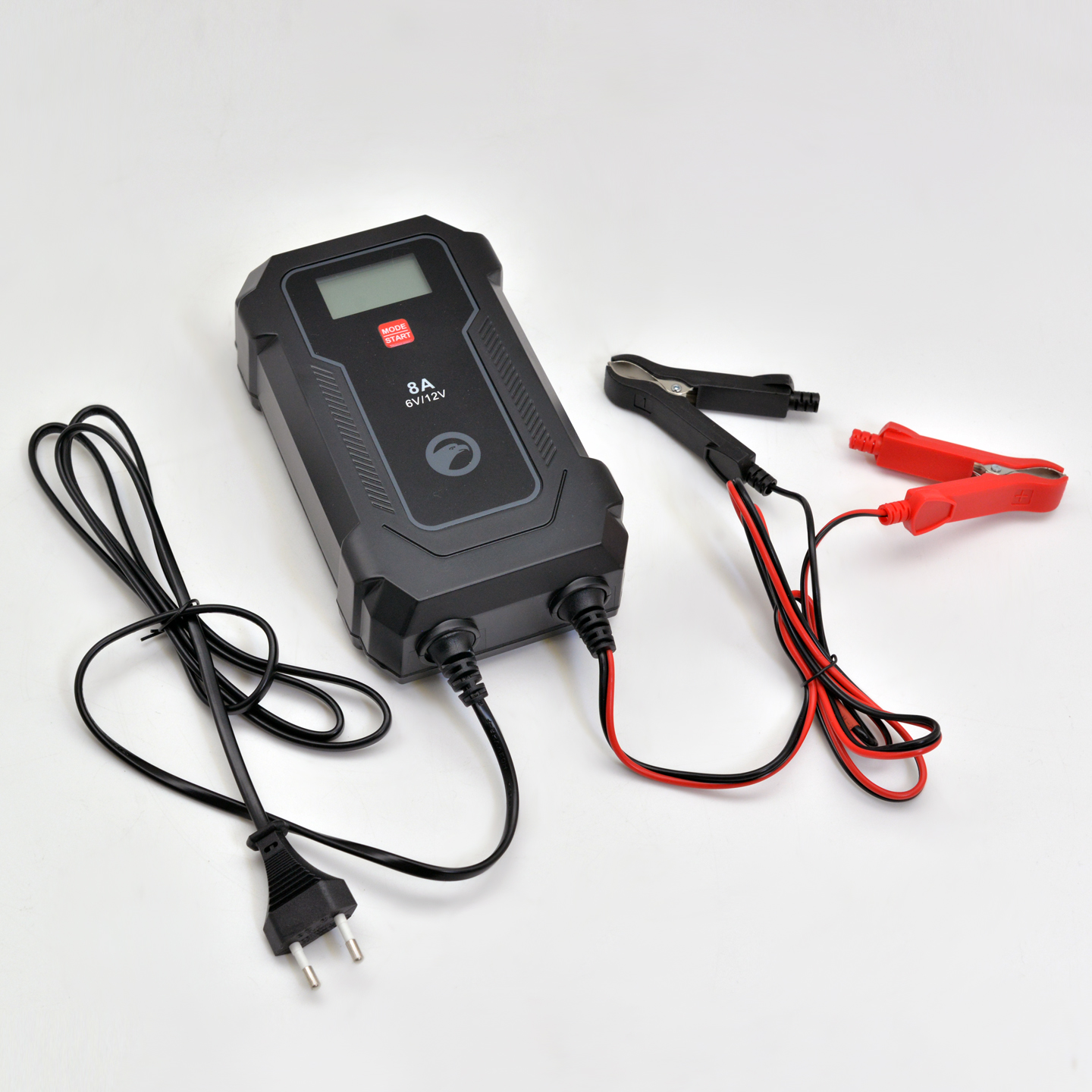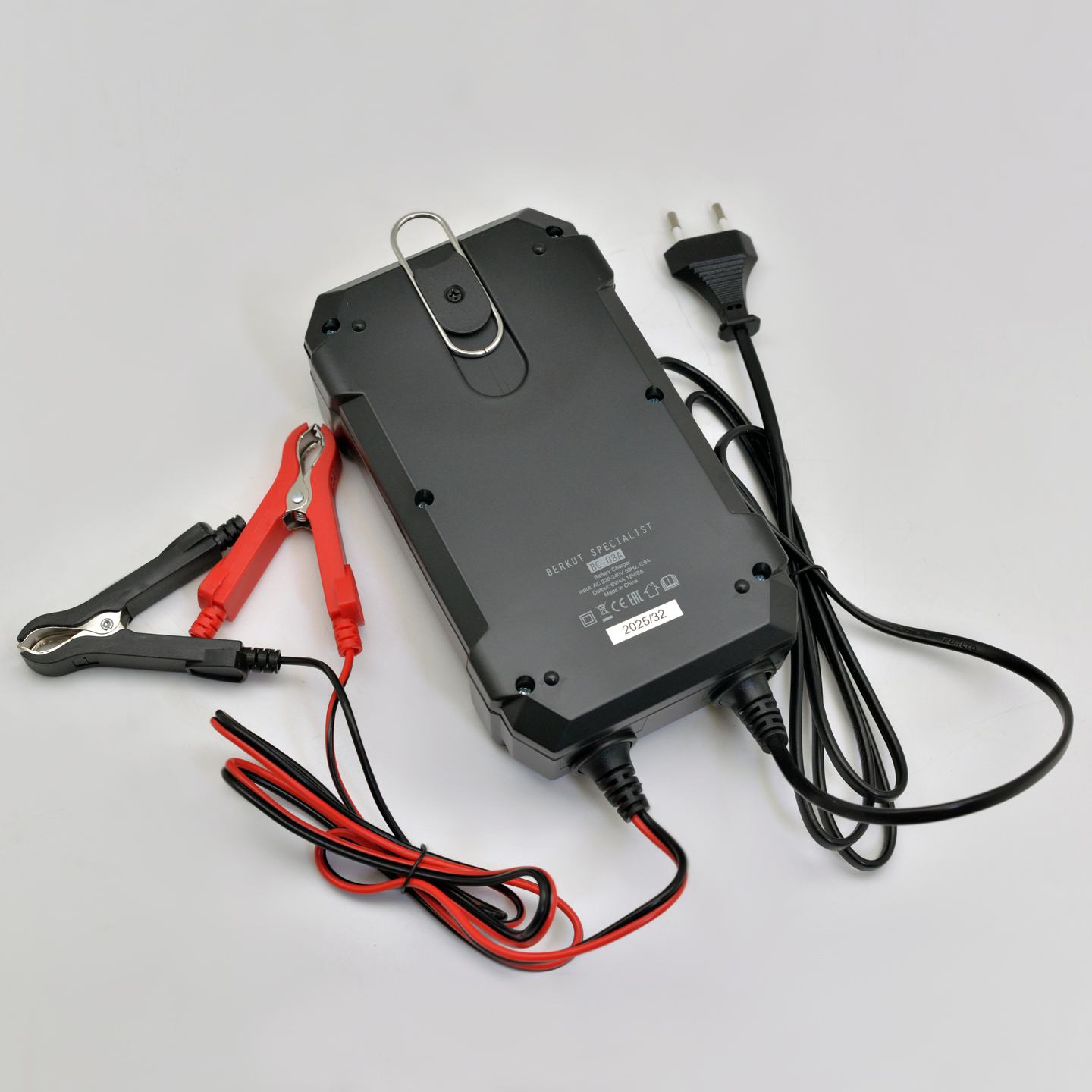 Зарядное устройство BERKUT BC-08A — полностью автоматическое устройство, предназначенное для обслуживания и зарядки 6 и 12-Вольтовых аккумуляторных батарей емкостью от 4 до 120 Ач, используемых в мото- и садовой техники и т.п. Устройство является полностью автоматическим и имеет поэтапный поэтапным алгоритмом зарядки в 9 стадий.